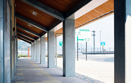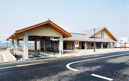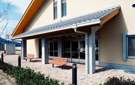 この建物は、屋根は日本瓦を葺き、また内外の仕上げは和風を基本として、周辺の氷上地区の伝統的な景観の継承を図っている。外観は小規模な施設ながらも視認性を高めるため、アイストップとなるように休憩所部分の棟を高くし、大きな切妻の屋根を見せている。休憩所内は内部仕上げに一部木を使い、親しみのある空間となるよう配慮した。トイレは、通風・採光を良くして、機械設備に頼らない、環境にも優しい施設を目指すと共に、誰でもが安心・安全に使えるユニバーサルデザインを心掛けた。