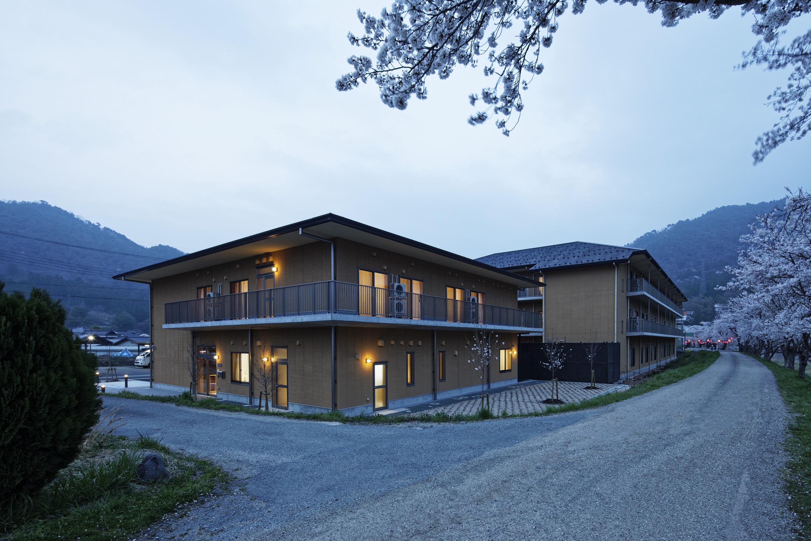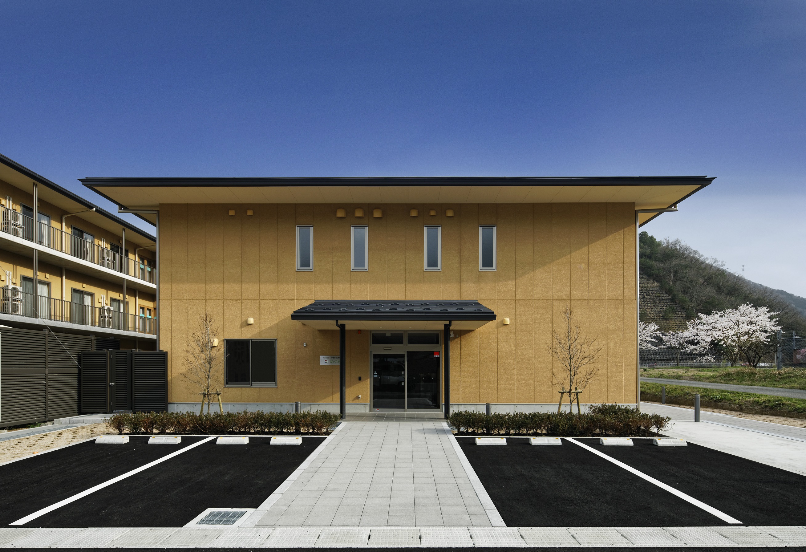 朝来市和田山町、竹田城下の円山川沿いに神戸聖隷福祉事業団の多機能型施設めぐみを新築しました。