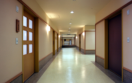 この建物は、従来あった施設の劣化が進んだことによる建替えである。既設建物を残して使用しながらの工事で、色々と設計や工事において制約があった。建物は中央吹き抜けや階段、EVを取り囲むように”8”の字構成のプランで、行き止まりのない自由な動線計画となっている。1フロア約25人の収容だが、”8”の字のブロック配置を生かしながら、ユニットとしての小単位の構成になるように意図し、親しみやすいヒューマンスケールの施設を目指した。
