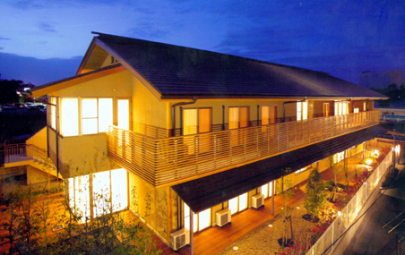 この建物は痴呆性の高齢者(2ユニット:18名)が入居する、鉄骨造2階建の福祉施設である。従来の福祉施設にありがちな無機質な雰囲気は排除し、18人が暮らす”大きな家”というコンセプトのもと鉄骨造でありながら、内外観共に木を随所に使い、親しみやすく、暖かい雰囲気の建物になるように計画した。