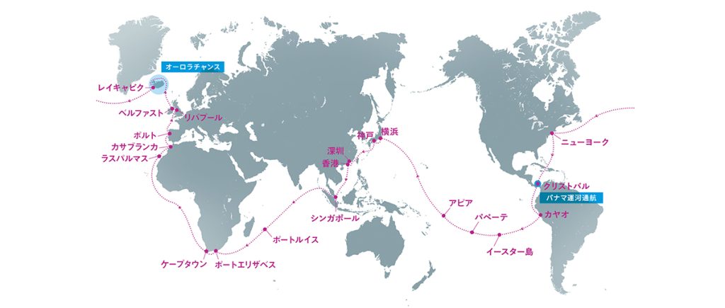 「神秘の地球と出逢う旅」と称した「Peace Boat Cruise Voyage 118」は航路は、地球を西回りでインド洋からスエズ運河を抜け、エジプト・ギリシャ・イタリアと地中海を通りポルトガルからイギリス・アイスランドでオーロラ観測をして、ニュ-ヨ-クに向かいパナマ運河を通りペル-のマチュピチュ、そしてイースタ-島のモアイ像を見てハワイに向かうという夢のような航路でした。