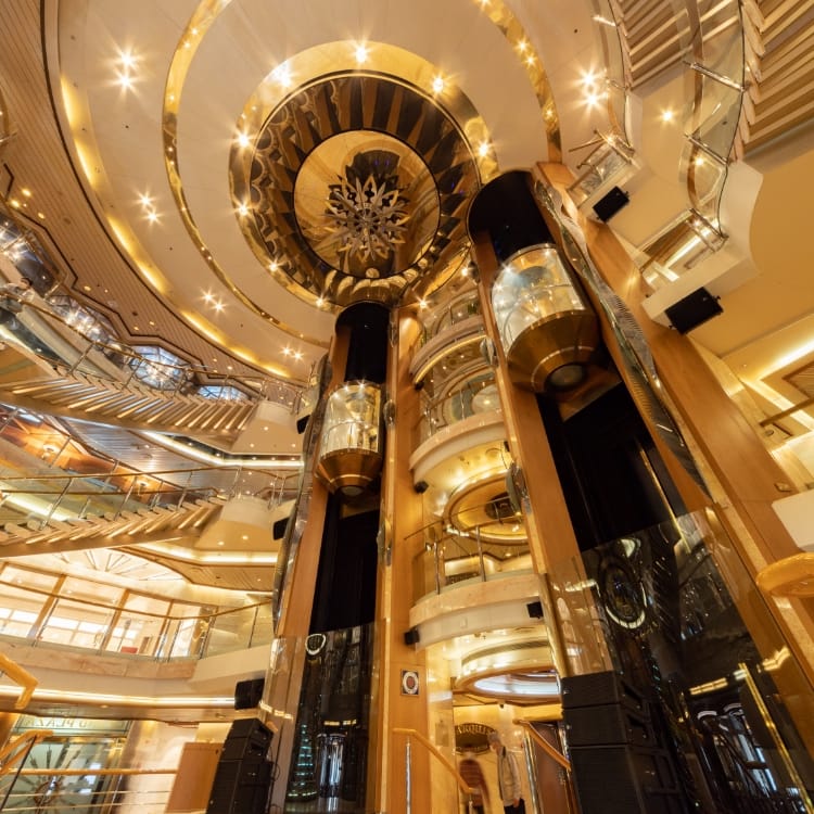 4F:診療室、5F:レストラン(マーキスダイイニング)・ アトリウム・レセプション インフォメ-ション・客室、6F:レストラン(リージェンシ-ダインニング)・イベントル-ム・ショップ・客室、7F:シアタ-・バ-3・ラウンジ、8F~11F:客室、12F:プール・ゲームエリア・サウナ・フィットネス・エアロビスタジアム・美容室・客室、 14F:レストラン(ビュッフェ形式5時~24時)・テラスグリル・バ-、 15F:プール。スポ-ツエリア